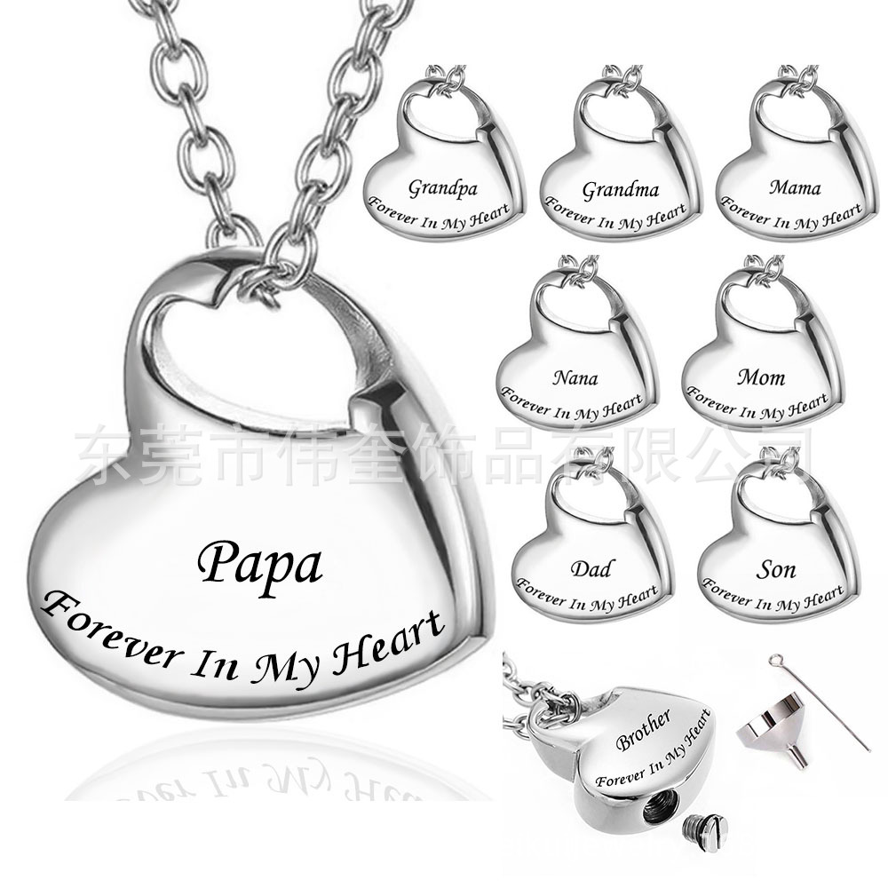 ステンレスの歪んだ桃のハート型の男女のネックレスの欧米の骨の箱の記念の刻字のペットの恋人のdadの骨のペンダント