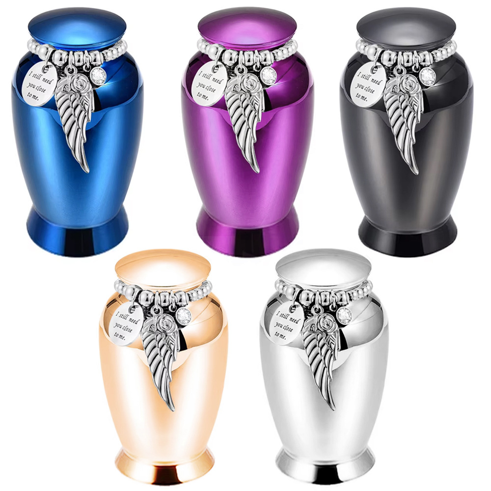 新しいペットの遺骨箱、親戚やペットの記念品として、ビーズの翼が刻まれたアルミニウム合金の遺骨箱