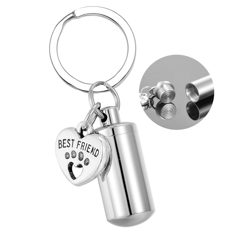 AliExpress ホット販売ペット記念ステンレス鋼キーホルダー円筒爪跡ペンダント開閉可能な香水ボトルジュエリー