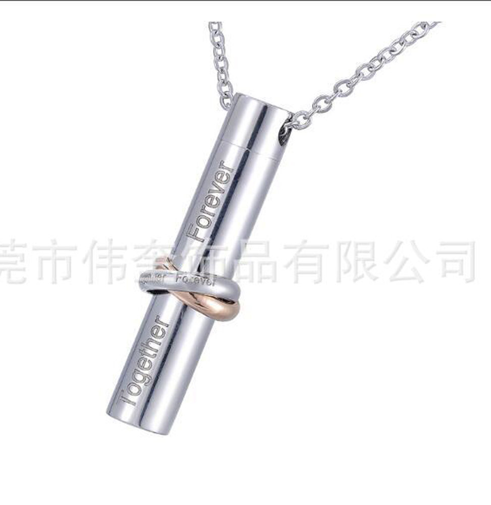 日韓アクセサリーカップルネックレスステンレスシンプルな円筒形香水瓶の骨灰箱はペンダントのキーホルダーを開けることができます。