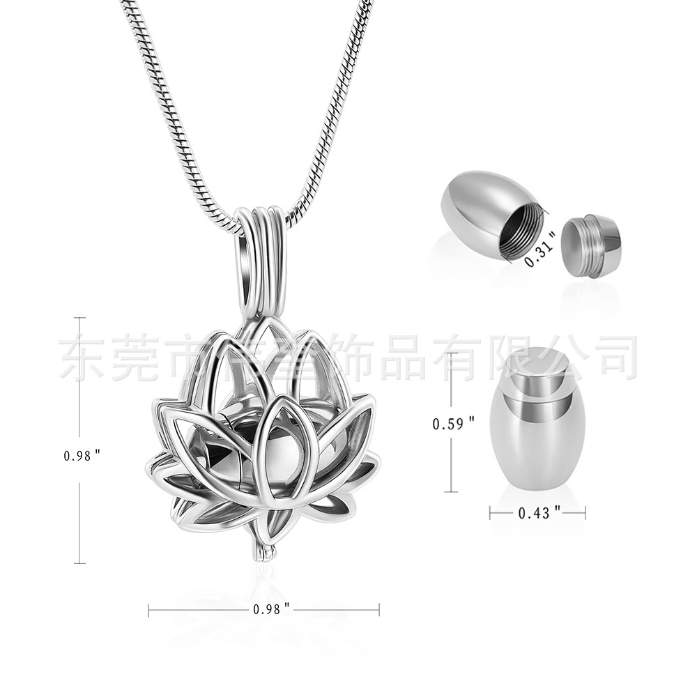 爆発的な蓮の花型は個性的な香水瓶を開けてステンレスのネックレスの骨灰箱の男女の記念品をペンダントすることができます。