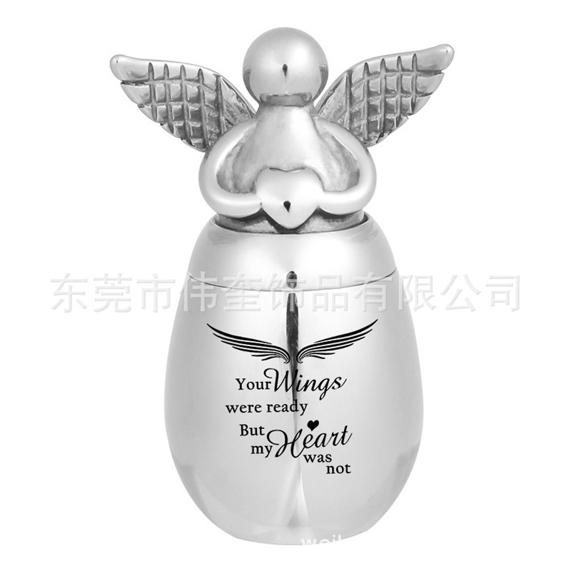30x40mmステンレス銀色の天使の頭は家族の骨灰缶の納骨箱を記念して字を刻んで骨灰壇を刻んでいます。