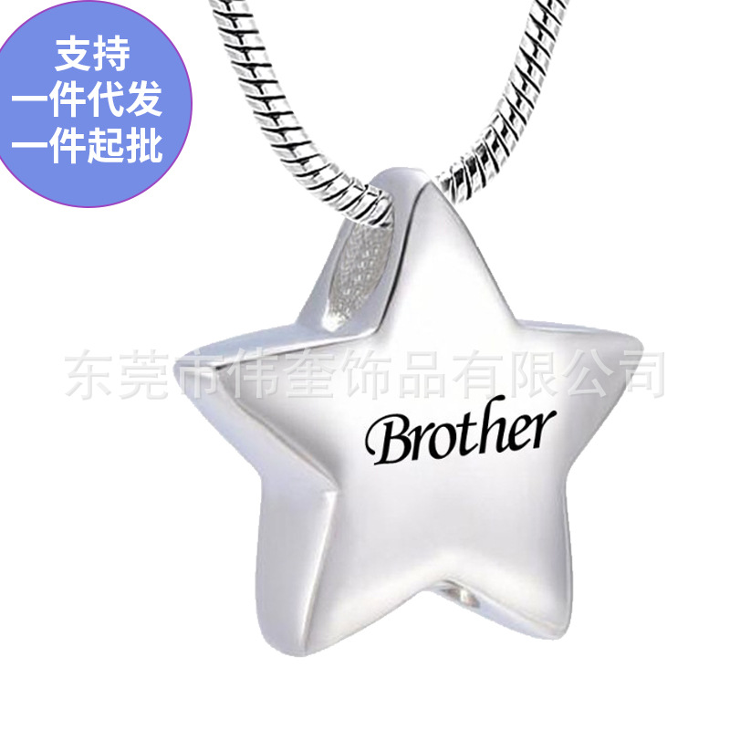 新型記念兄弟ブラザー五角星骨灰箱ネックレスは、刻字骨灰箱骨灰缶を開けることができます。