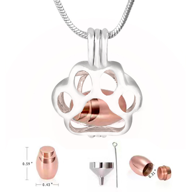 With新型チタン鋼透かし彫り犬爪形骨灰缶ペンダント香水瓶ネックレス記念ペット骨灰箱