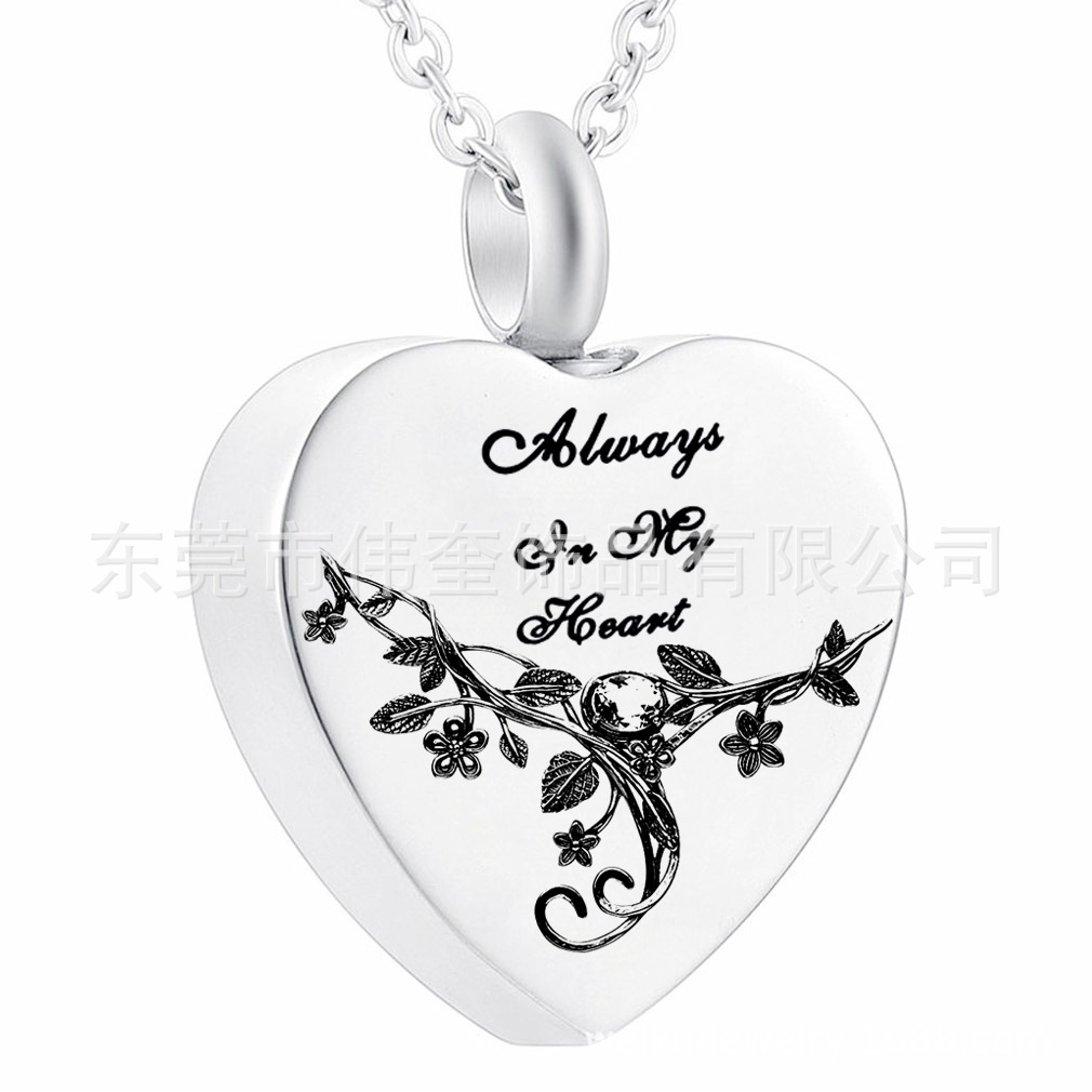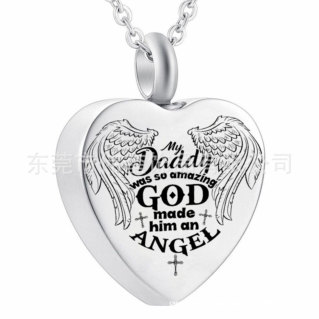 速売通の人気記念家族の骨灰ネックレスチタン鋼ハート型の翼骨灰箱ペンダント欧米のアクセサリー