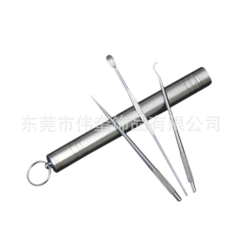 304ステンレス爪楊枝筒チタン合金爪楊枝直フック + フック + 耳スプーン歯抜き神器携帯旅行セット