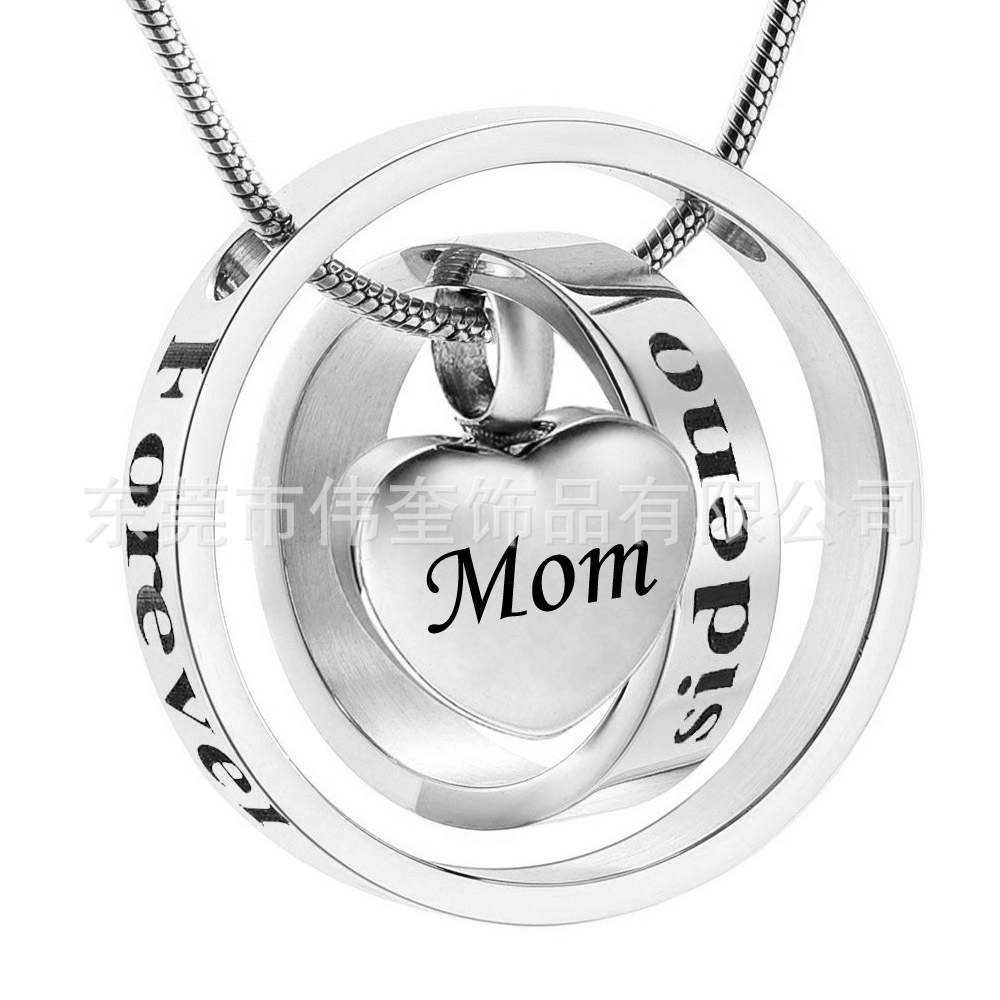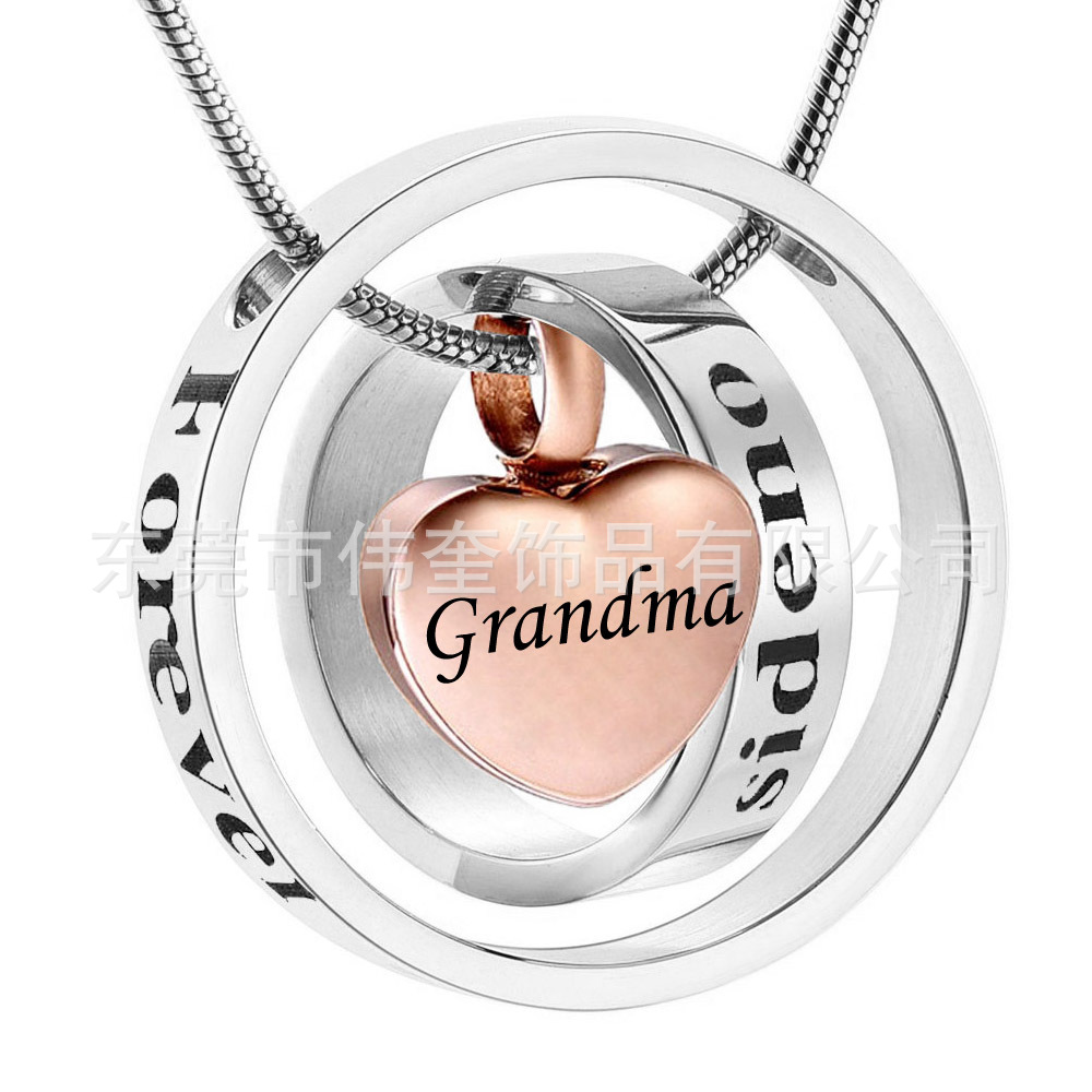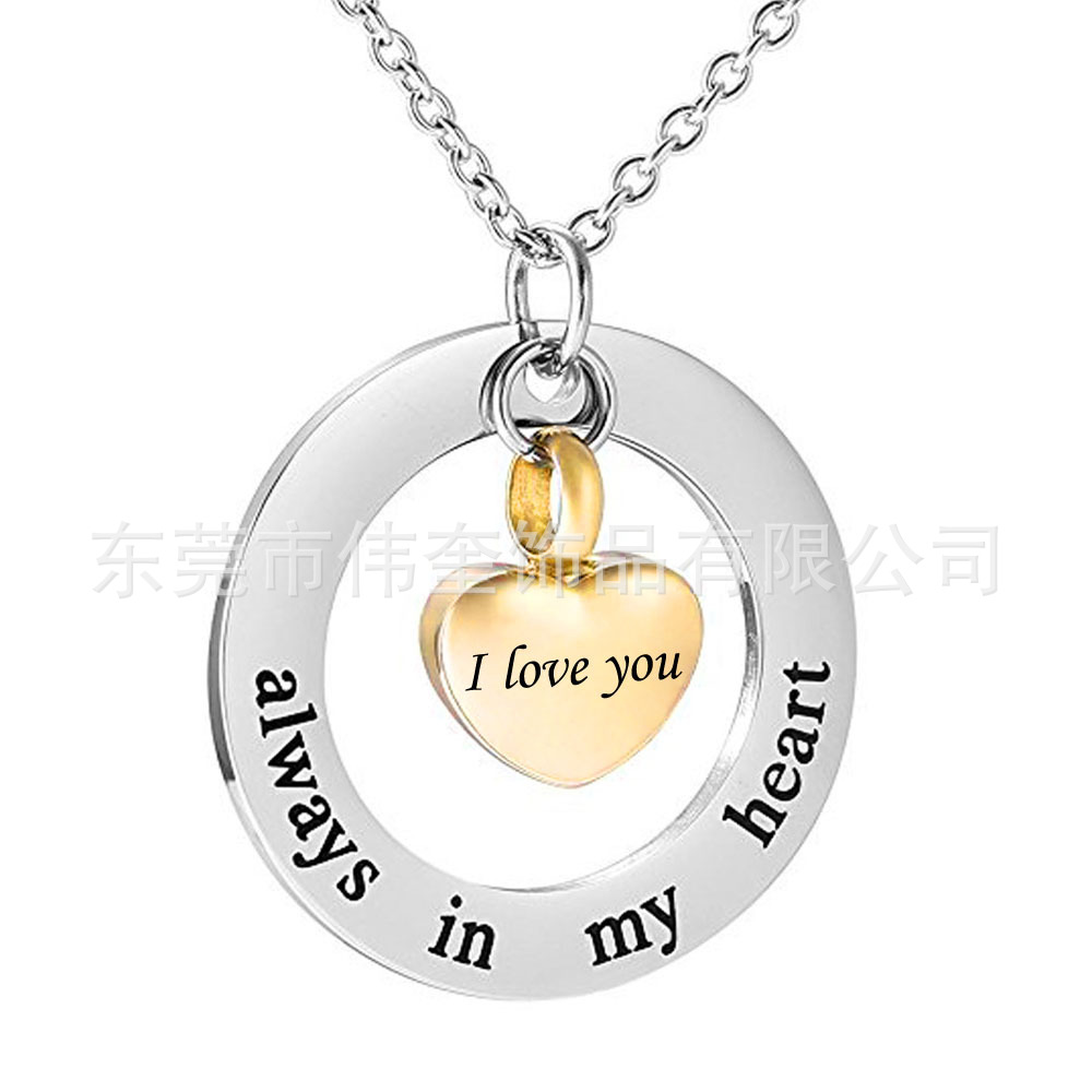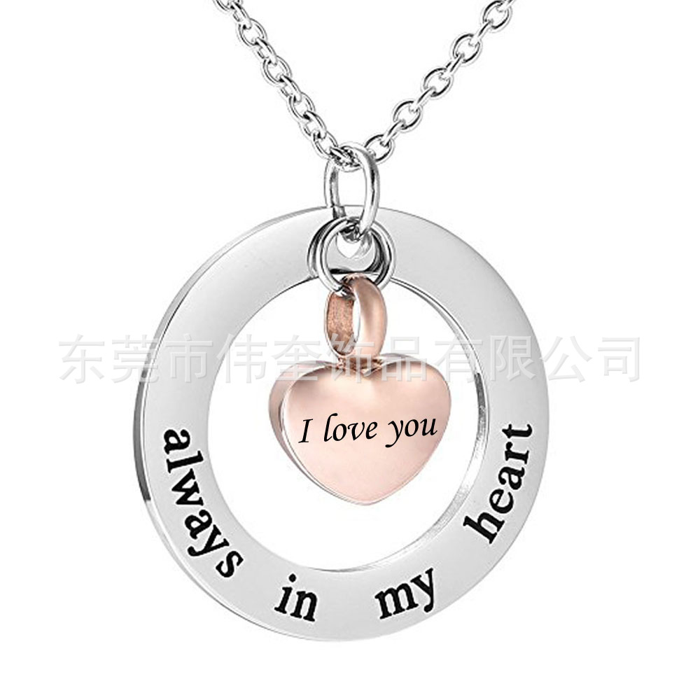 チタン鋼アクセサリーハート型骨灰箱ペンダント記念家族リングセット心納骨ネックレス火葬ジュエリーアクセサリー