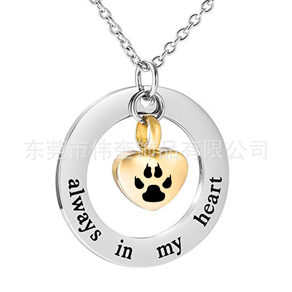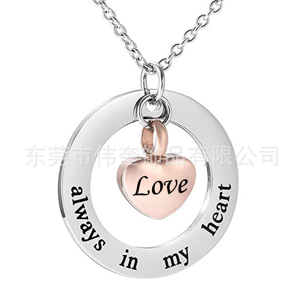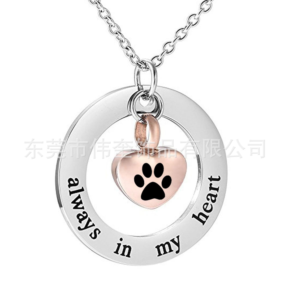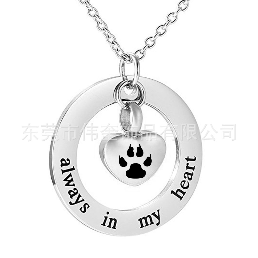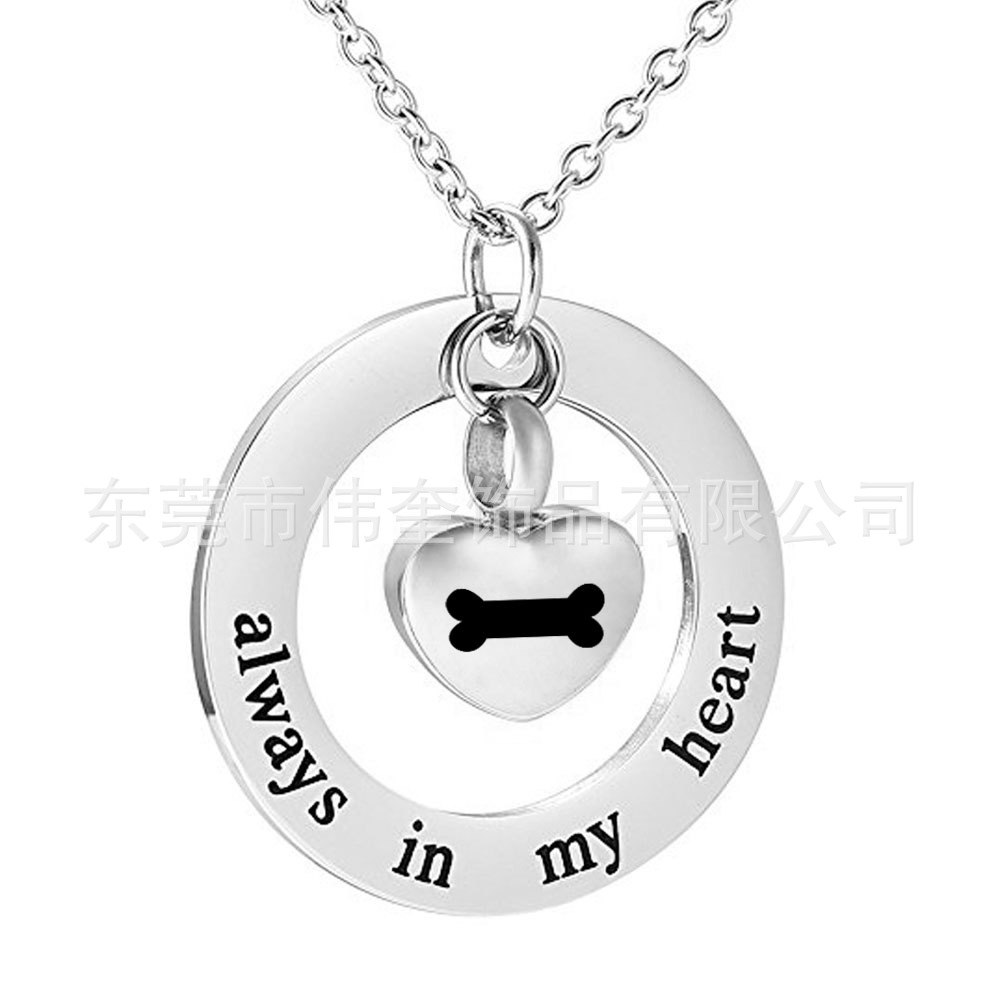越境商品源記念ペット毛遺骨骨灰箱ネックレスステンレスハート型犬骨灰箱ペンダント
