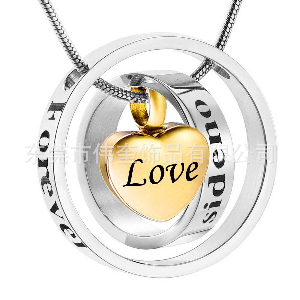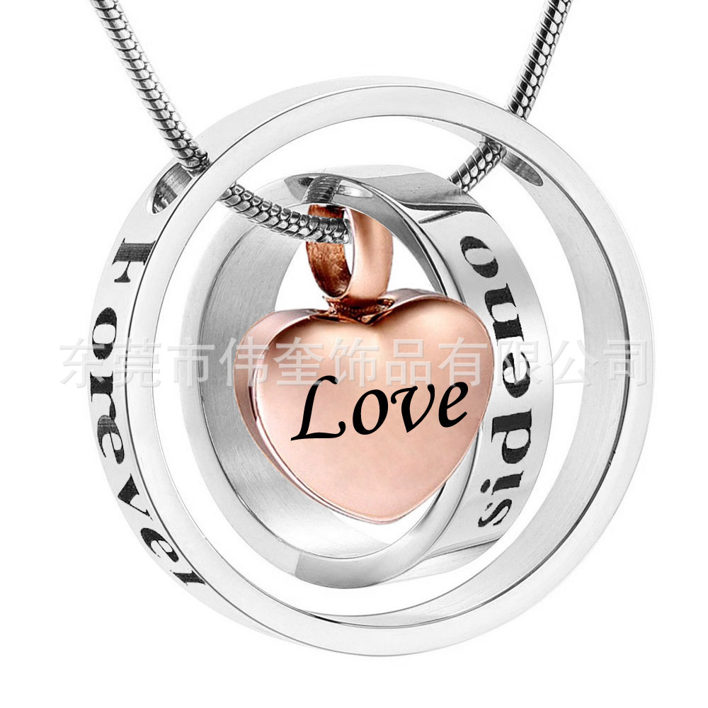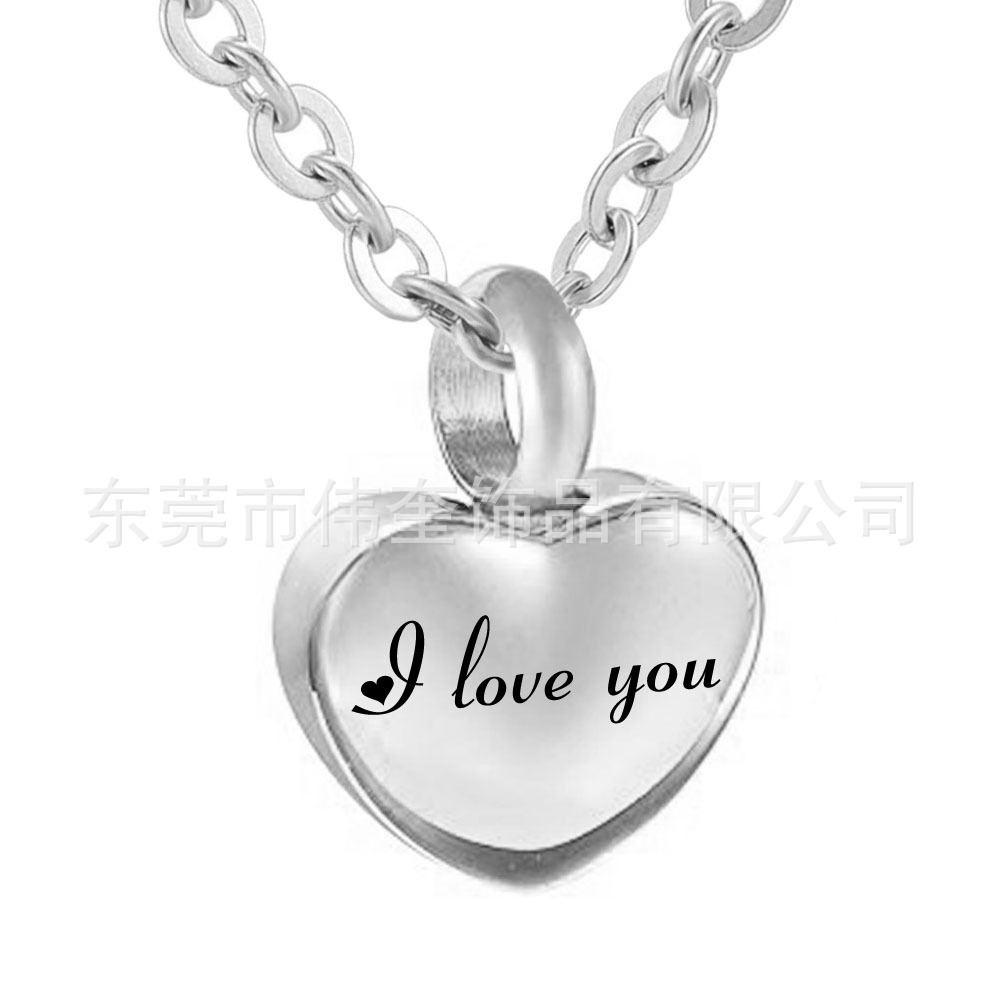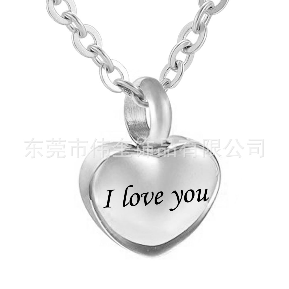 チタン鋼アクセサリーハート型i love you骨灰箱ペンダント記念家族ペット骨灰ネックレス香水瓶