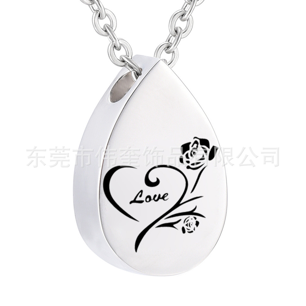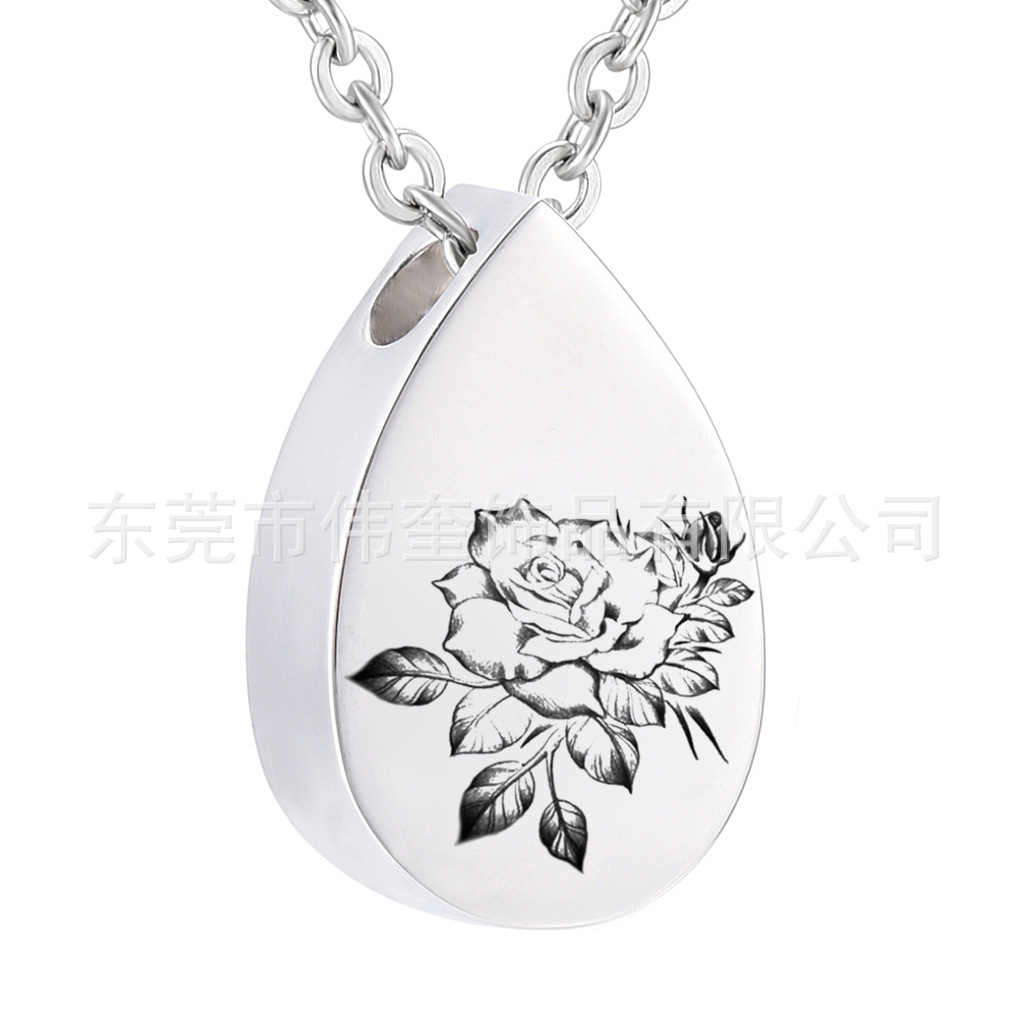 国境を越えたペットの納骨ネックレスステンレス水滴形花の納骨箱ペンダントネックレス火葬ジュエリー