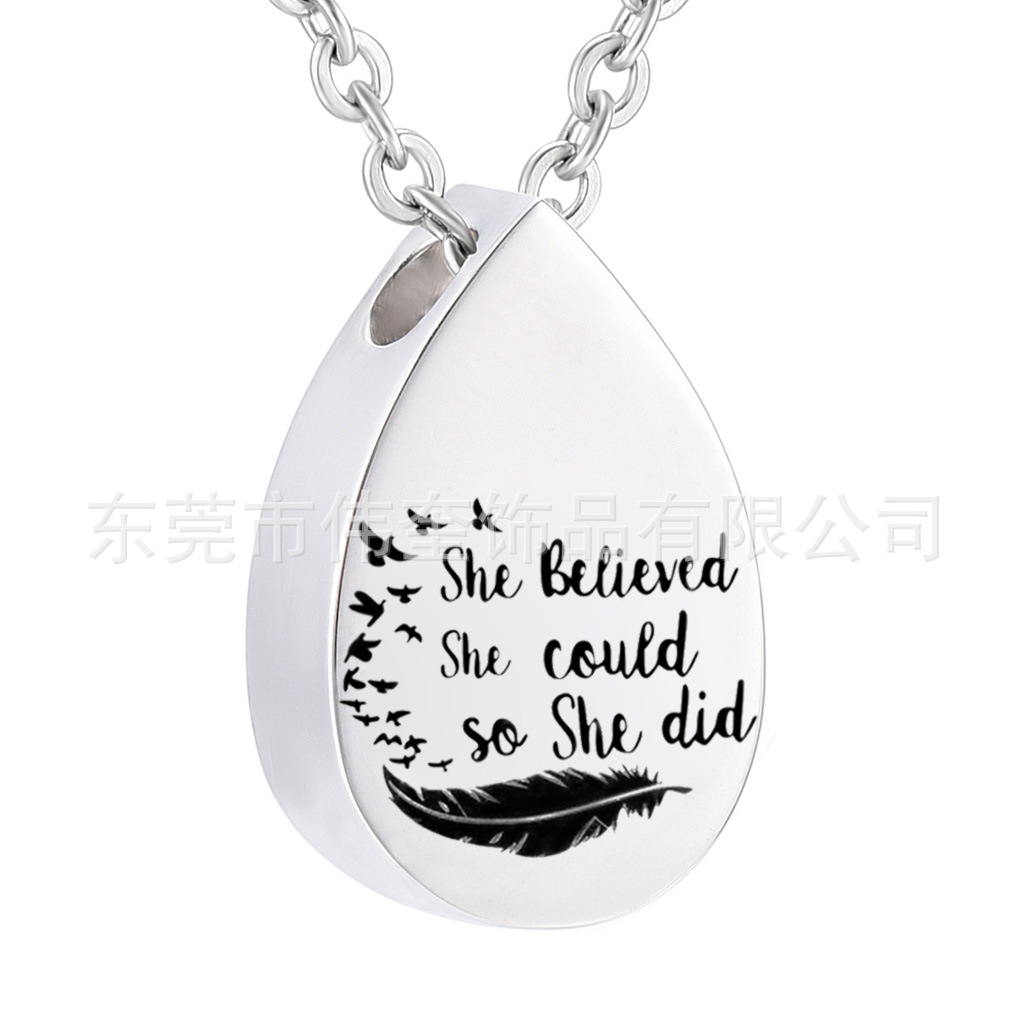 国境を越えたペットの納骨ネックレスステンレス水滴形羽毛納骨箱ペンダント火葬ジュエリー