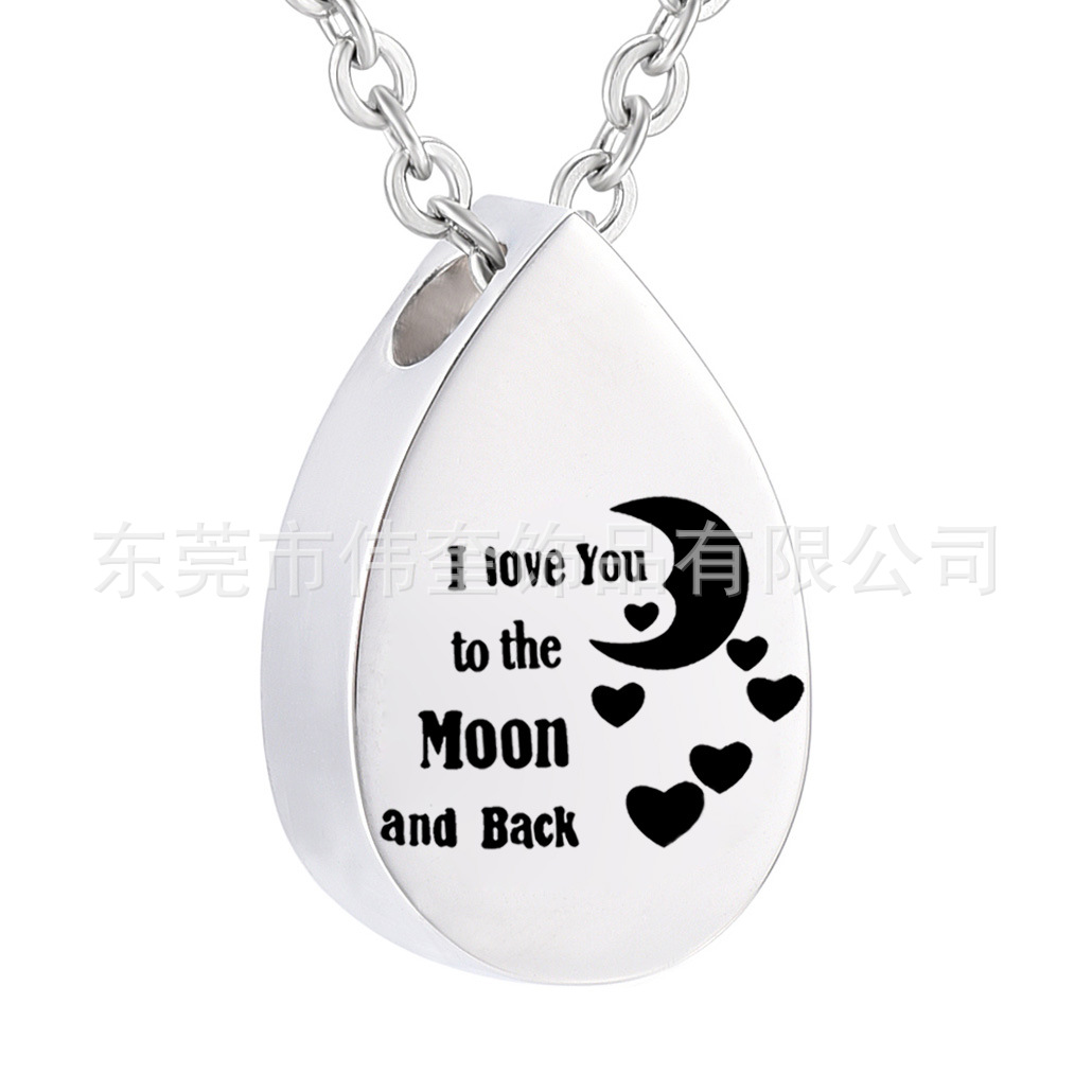 チタン鋼アクセサリーステンレス水滴形月亮心骨灰箱ペンダントペット骨灰ネックレス火葬ジュエリー
