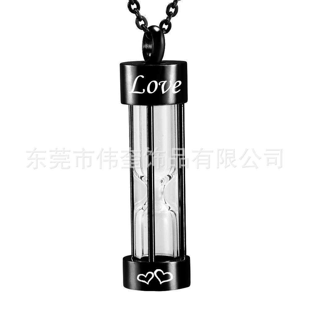 国境を越えたソース記念肉親の納骨ネックレスチタン鋼黒色砂時計納骨ペンダント火葬ジュエリーアクセサリー