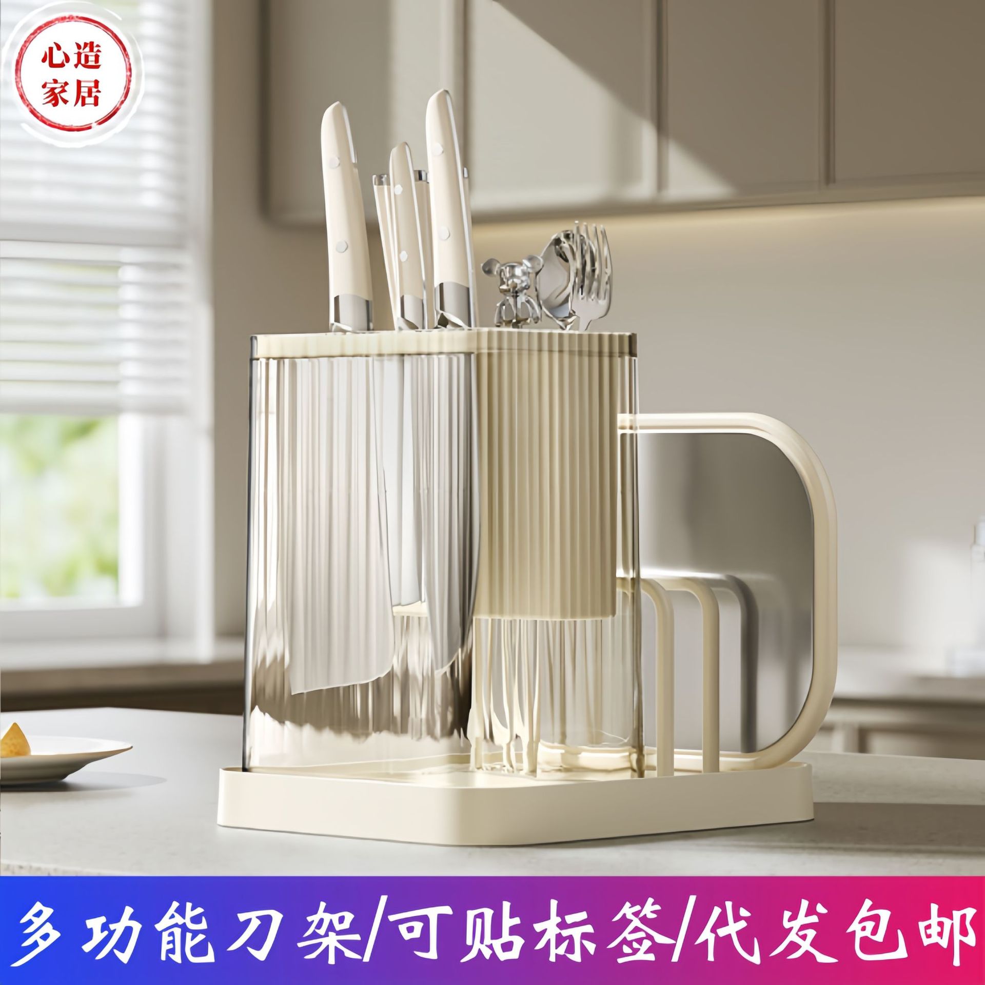 [人工] 包丁ホルダー、箸かご、まな板ホルダー、多機能収納ラック、家庭用箸とナイフ一体型収納ラック
