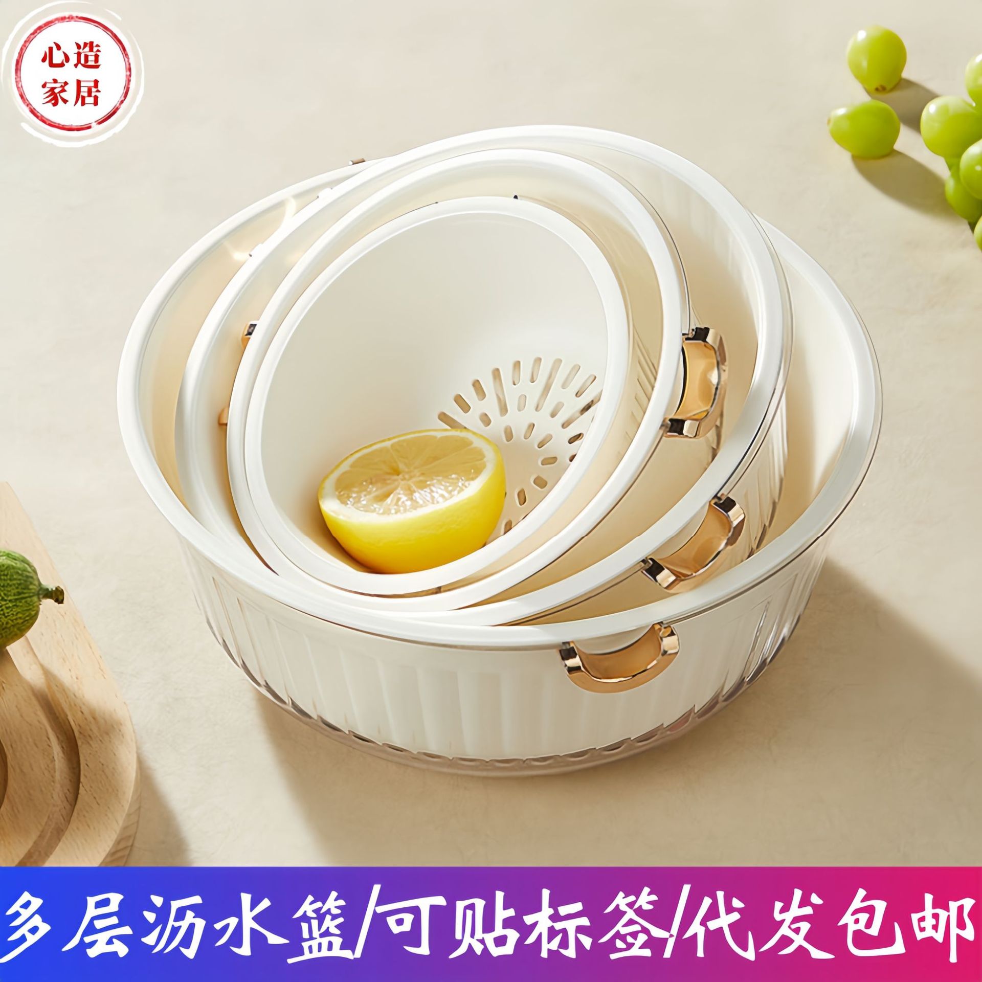 【心造】台所の水たまりかご家庭用プラスチック野菜かご果物かご二重多規格水槽収納かご