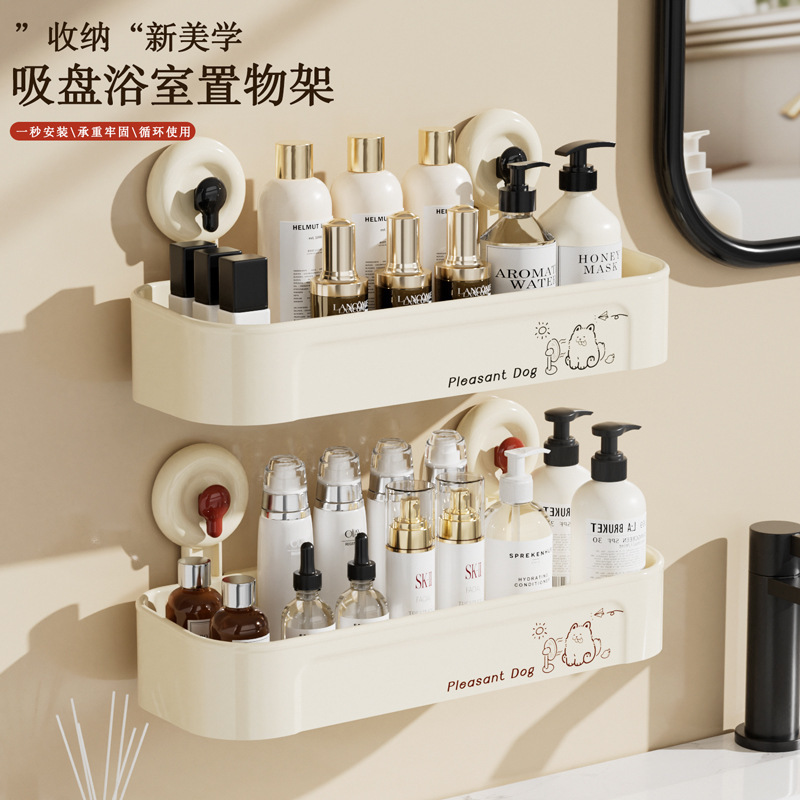 【心造】吸盤タオル掛け穴なし浴室バーフック付きトイレ棚クリーム風収納棚