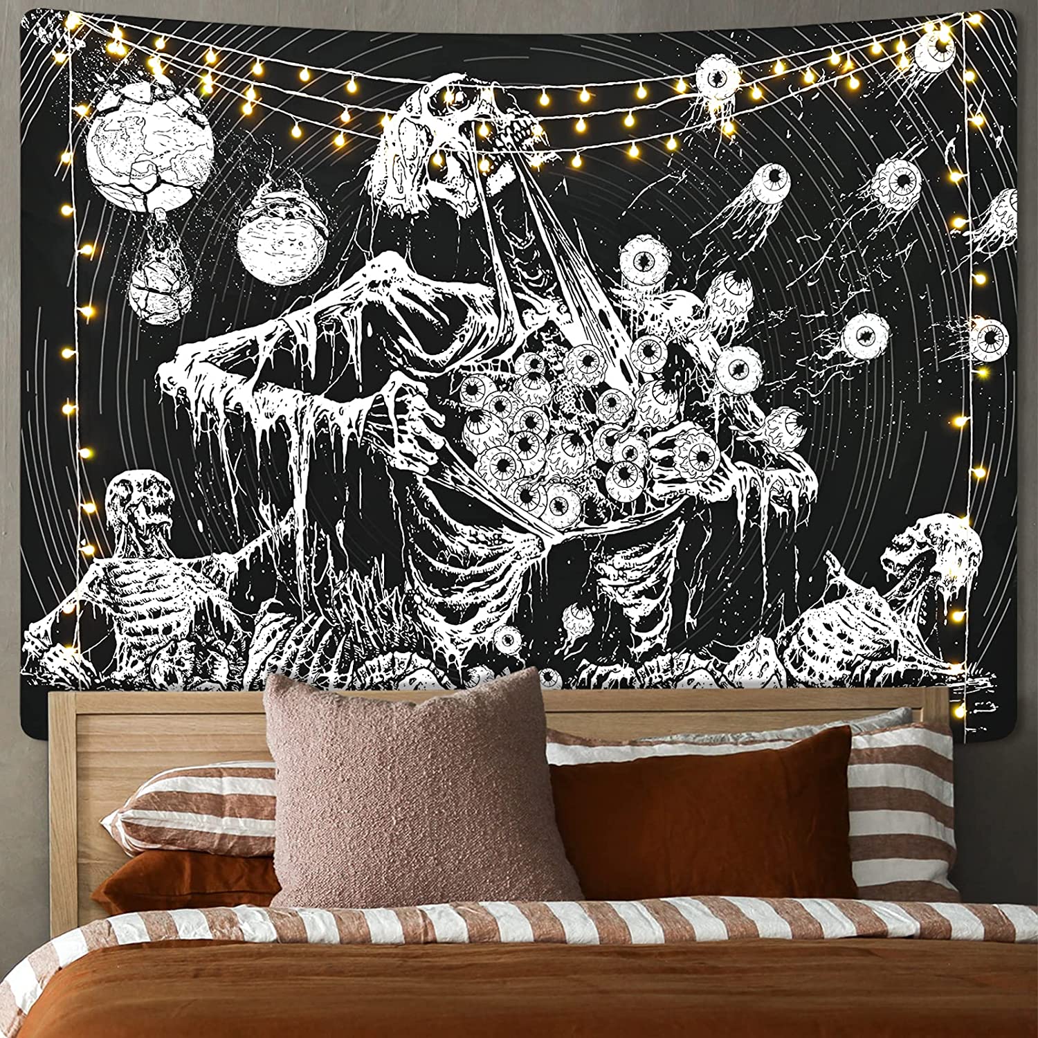 ゴシックスカルタペストリー黒と白の背景布ベッドルームベッドサイド木製ボヘミアンホーム装飾Trippy
