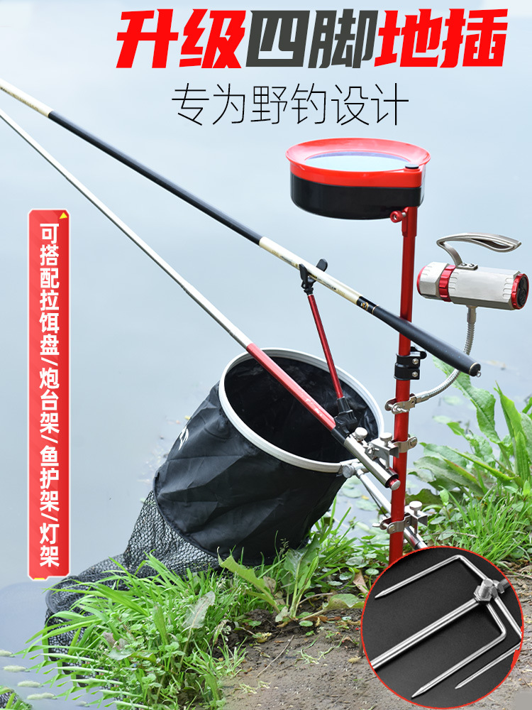 新品アルミ合金野釣地挿しスタンド三合一多機能釣りスタンド砲台餌皿挿しE18