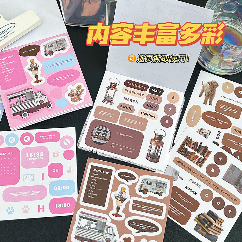 アメリカンレトロステッカー本ins韩系素材本フリーコラージュ手帐雑志ステッカー本无裁断ステッカーE18