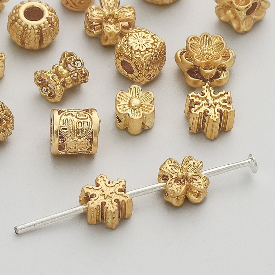 銅製古法沙金桶珠隔珠手作りdiyブレスレットネックレス珠托保色花形ビーズアクセサリーe 18