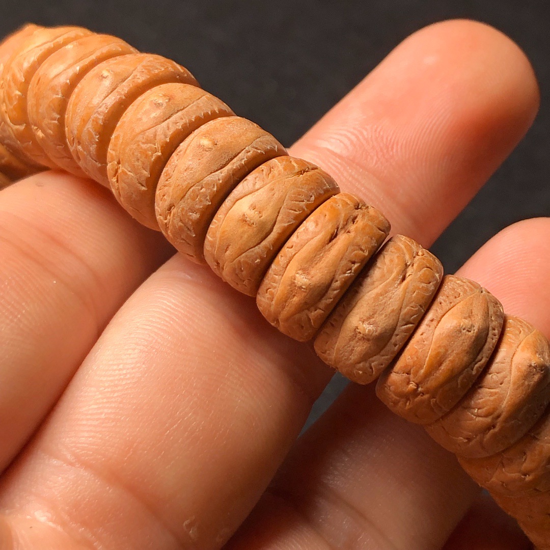 ネパールの赤黄皮鳳眼スライス扇面菩提仏珠菩提子は冷門文を持って手を遊びます。