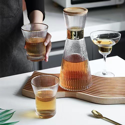 ストライプガラス冷水ポット家庭用リビングルーム冷水ポットコップ水用具耐高温ジュースポットポットポットカップE18