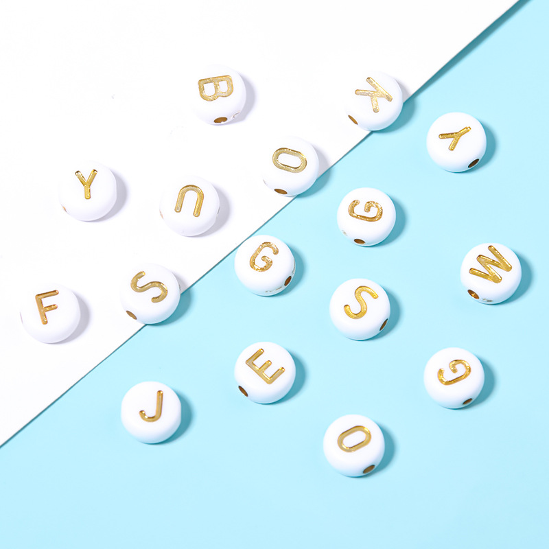アルファベット白地に金の字の平玉の子供のブレスレットのアルファベットのビーズdiyの手作りのアクセサリーの部品E18