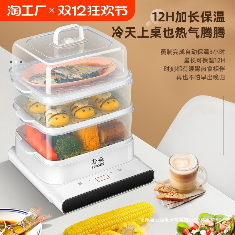 電気蒸し器24L家庭用スマート多機能蒸し器三層大容量可視蒸し器神器透明電気蒸し器