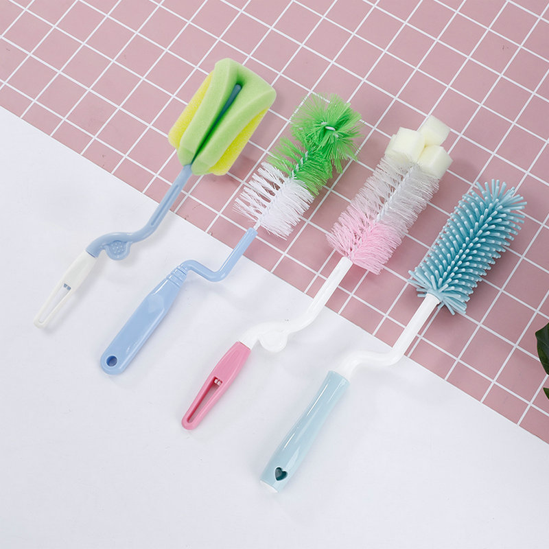広州メーカースポンジ哺乳瓶ブラシ母子哺乳瓶乳首洗浄ブラシセット360度回転スポット卸売り