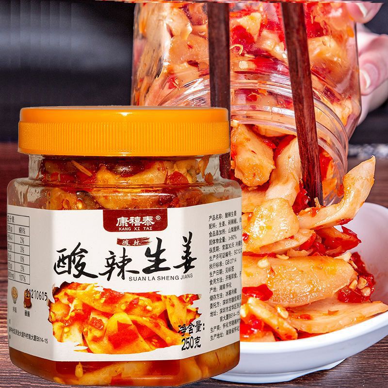 湖南の特産品、農家製の酸っぱい生姜、みじん切りの唐辛子、生姜片、すぐに食べられる漬け生姜、柔らかい生姜の漬物、食事用の漬物