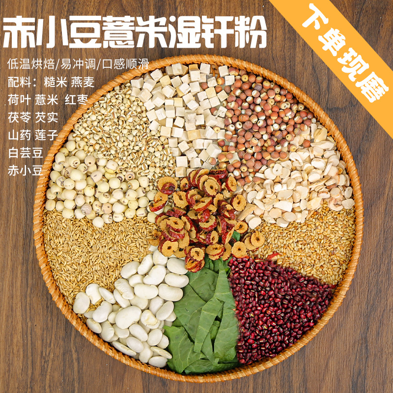赤小豆、大麦、クコ、ポリア粉末、水分を除去する代替品、挽きたての非湿潤穀物を選択してください
