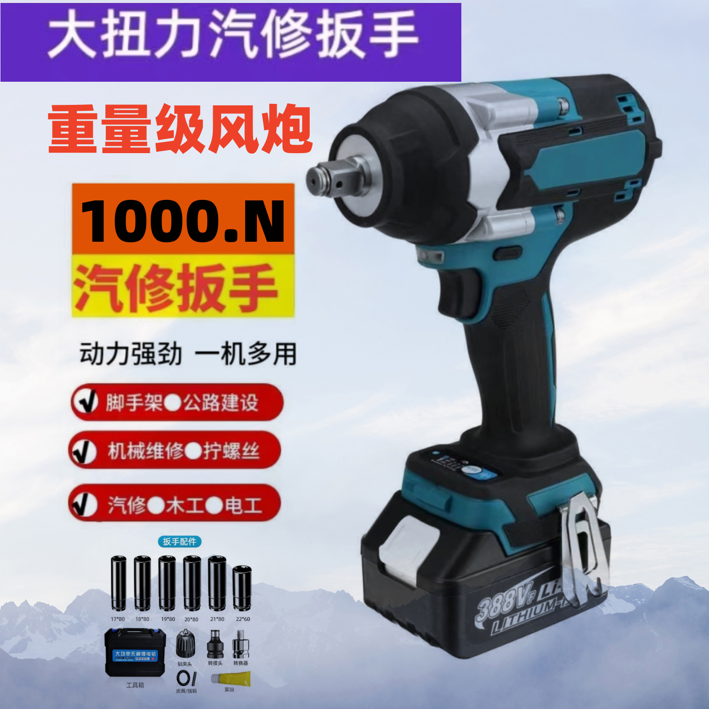 優力特電動レンチリチウム電気衝撃充電式レンチ棚工具大工板手風砲強力自動車修理