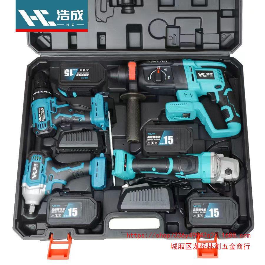 ブラシレスハンマー四点セット充電サンダブラシレスインパクトドリル三点セット電池通用セット工具セット