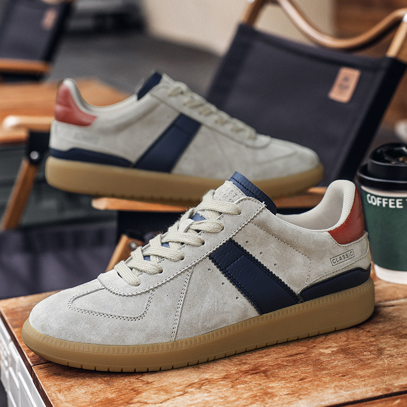 徳訓靴男振音爆金2024春真皮キャンパス風白靴軟底百合通気レジャー靴