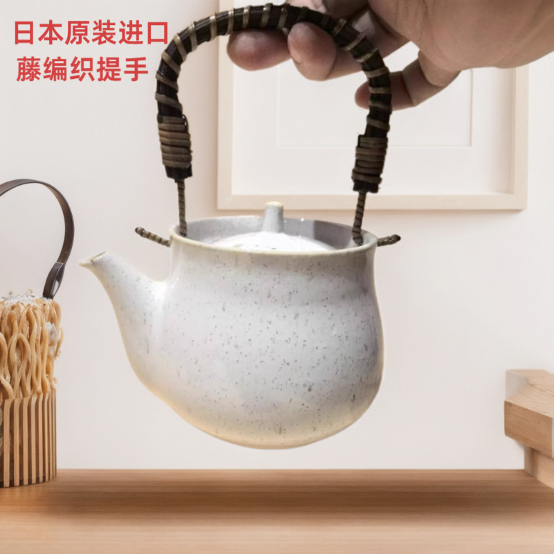 日本輸入ポット2杯ティーポットカップ茶和風竹藤取っ手ろ過分離カップ粗陶蓋