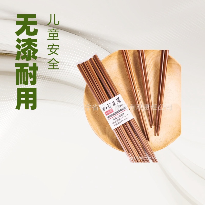 日本輸入石田ブランド日本式シンプル家庭客用実木原色茶色箸家庭用3p-5pセット