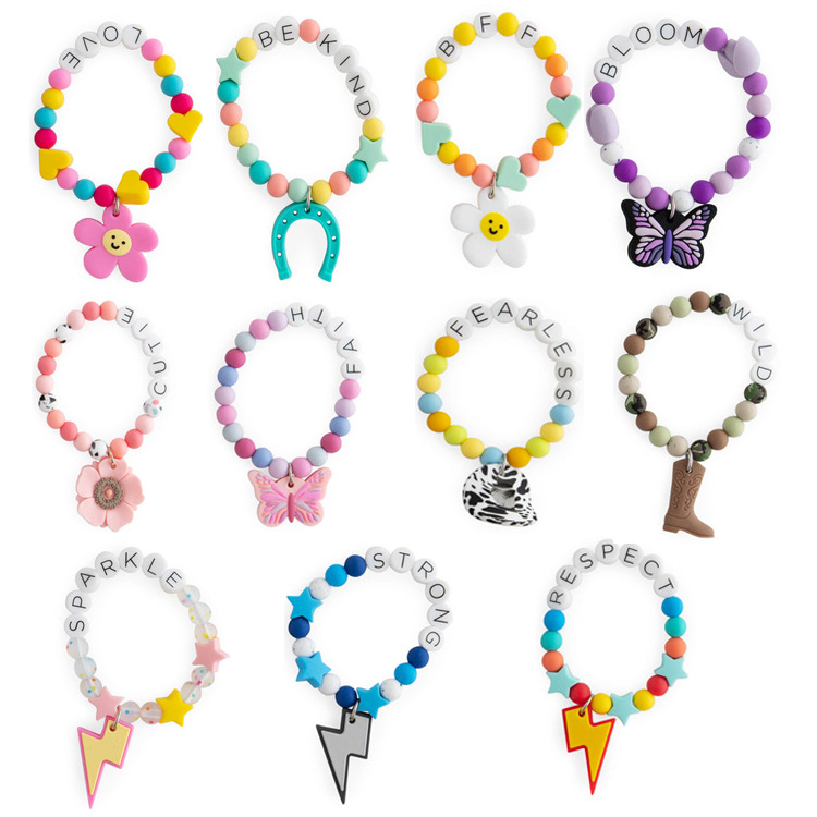 国境を越えた新製品メーカーはdiy手作りビーズをカスタマイズしたシリコンビーズ手串アルファベット漫画部品装飾ブレスレット