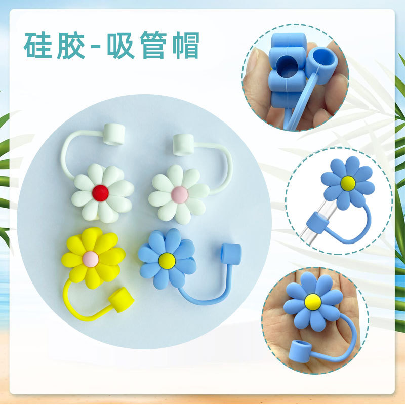 工場でよく売れている新品のシリカゲルストローキャップ創意かわいいシンプルな花ストロー防塵ストロー装飾落灰防止