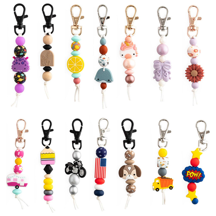 国境を越えて人気のある新製品カスタムdiy手作りビーズのシリカゲルビーズのキーホルダー個性色バックパック装飾品