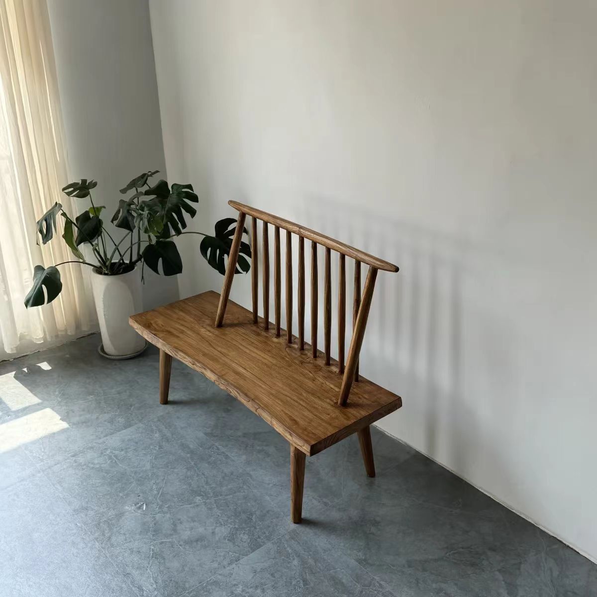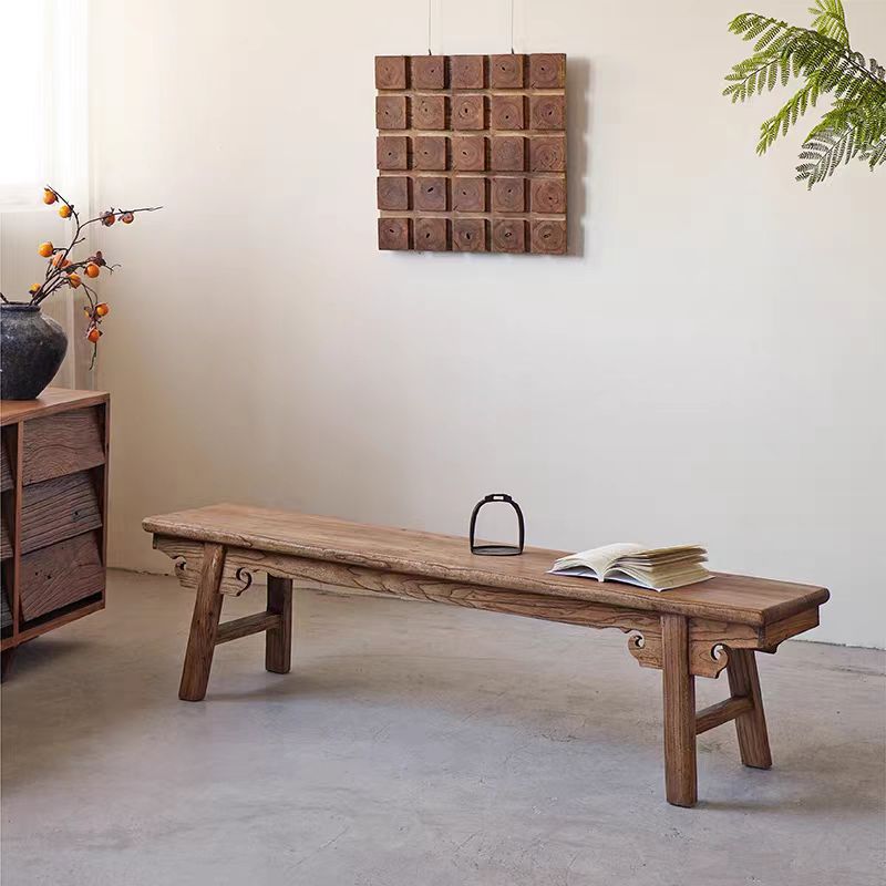 老楡木長条椅子民宿家庭用レジャーベンチショーウインドー背もたれ椅子中国式復古ソファー背もたれ椅子
