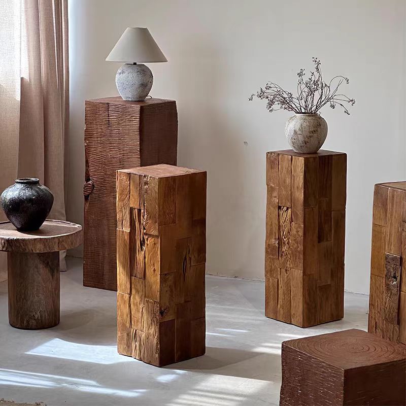 寂しい風のレトロな四角形の木の切り株の木の杭のお茶のいくつかの客間の主な横になって装飾の自然な木の土台の置物を飾ります。