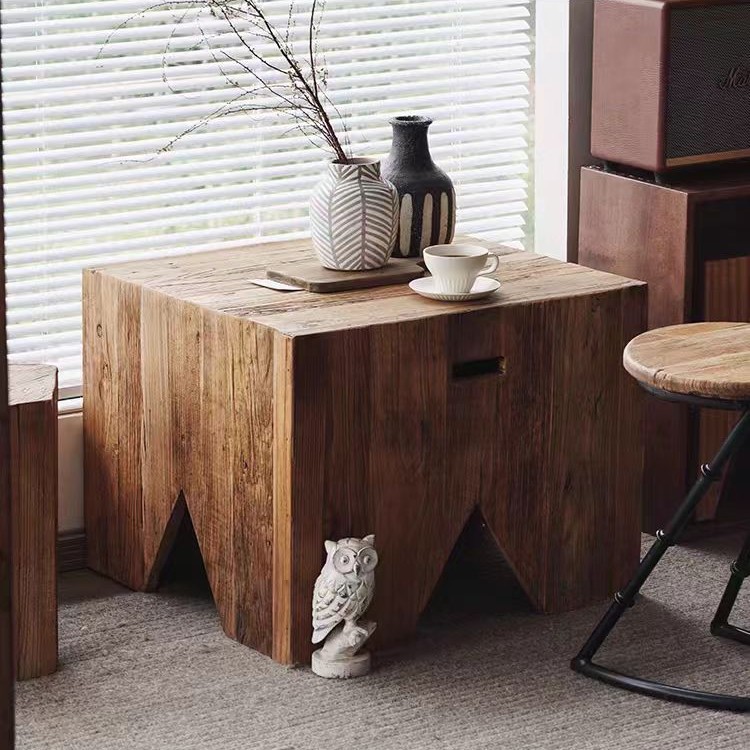 古い楡木の茶卓の実木の四角形のソファーの茶卓の民宿の復古の庭のレジャーの低いテーブルの禅意の茶卓の小さい方のテーブル