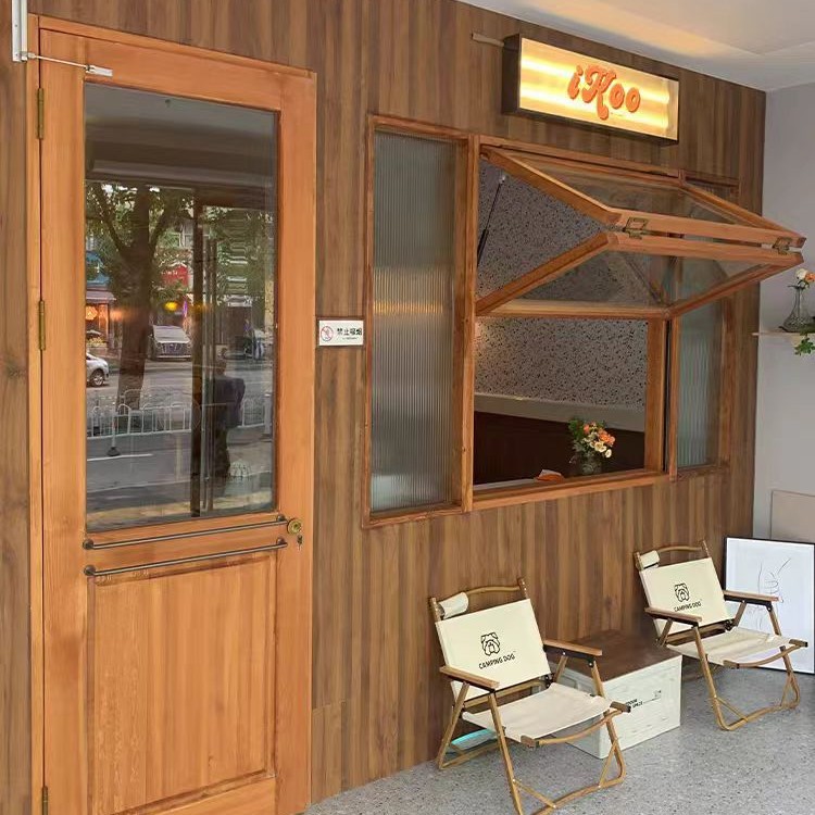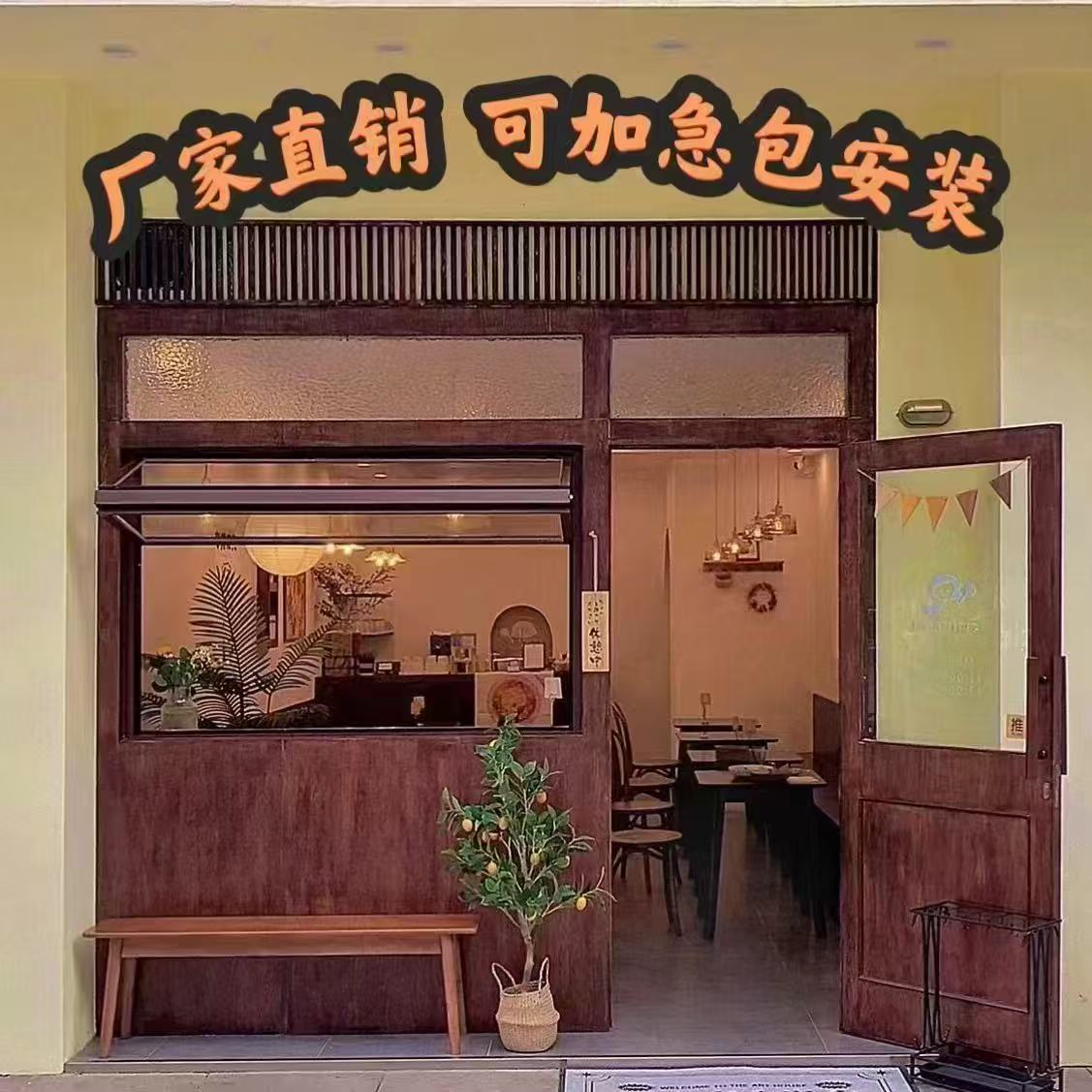 古い楡木の実木の扉と窓の上下に窓を折って窓の民宿の乳茶店の喫茶店の店舗を押して戸口に入ります。