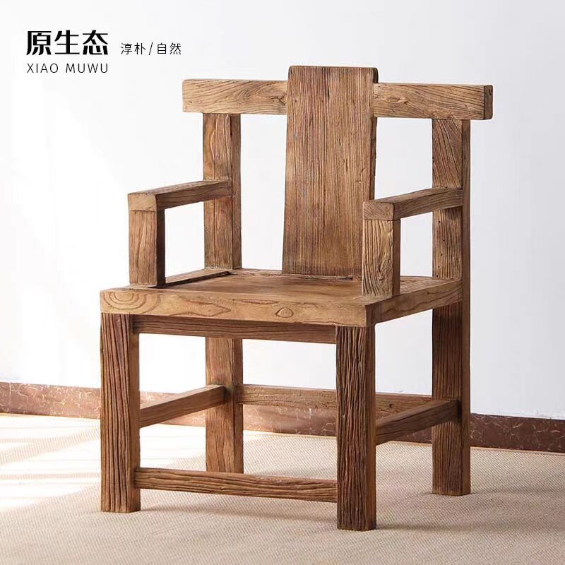 新中国風老楡木レトロ家庭用背もたれ椅子のアームチェア