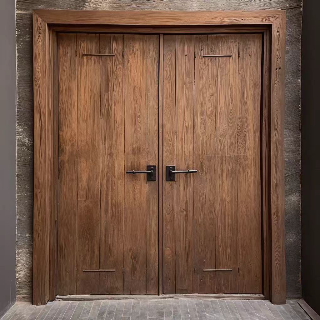 レトロ中国風老楡木大門実木ホテル民宿寝室のドアバーは古い装飾のドアを開けます。