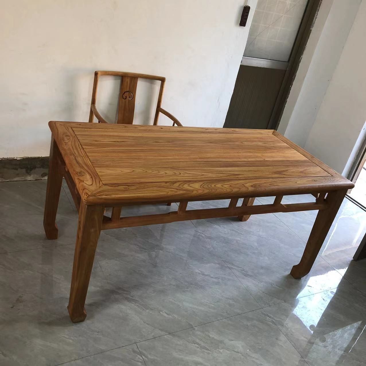 中国式の古い楡の木の馬蹄のテーブルの原木の机の禅意の本の絵のテーブルの新しい中国式の食事のテーブルの復古の木製のお茶のテーブル