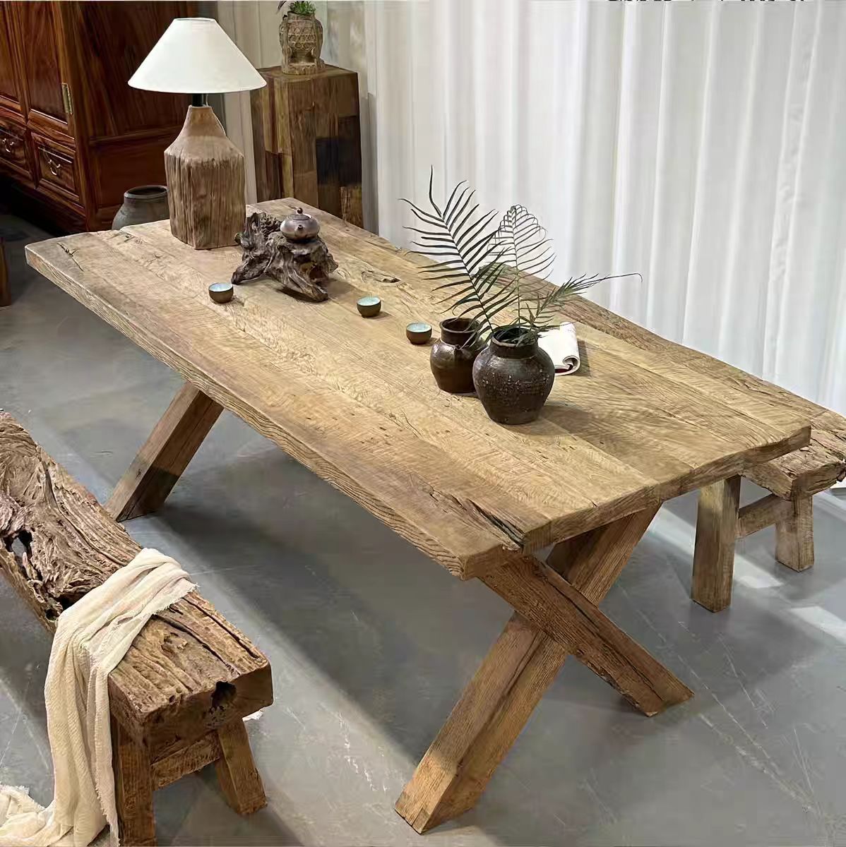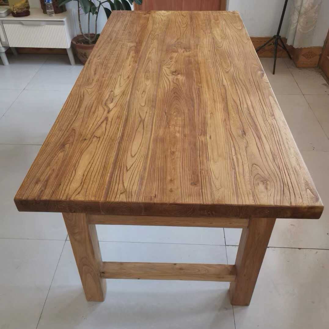 古い楡木木大板茶卓原木事務会議食卓家庭用食事テーブル長方形机コンピューター台