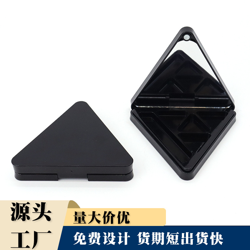 創意的な三角形のふたをひっくり返して鏡の多い宮の格のアイシャドーの箱の頬紅のハイライトの粉の餅の箱を持ちます。