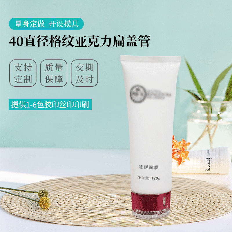 卸売り睡眠マスク分注瓶120gpeプラスチック包装ホース40径格紋アクリル平蓋管