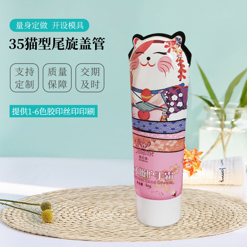 メーカー35径猫型テールキャップチューブピンクハンドクリーム子供用スキンケア化粧品複合ホース梱包材